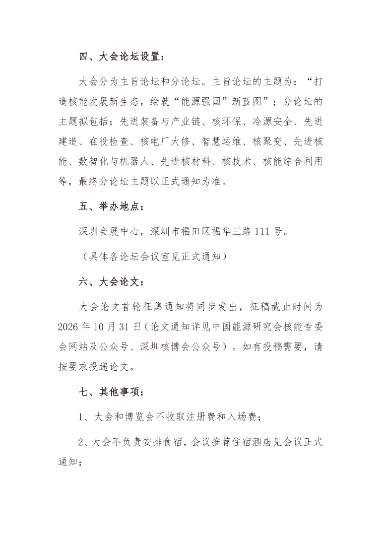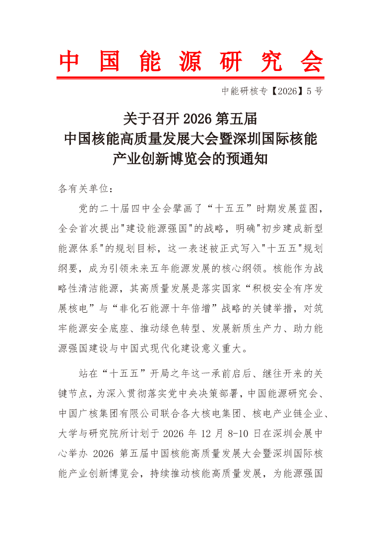 關(guān)于召開2026第五屆中國(guó)核能高質(zhì)量發(fā)展大會(huì)暨深圳國(guó)際核能產(chǎn)業(yè)創(chuàng)新博覽會(huì)的預(yù)通知
